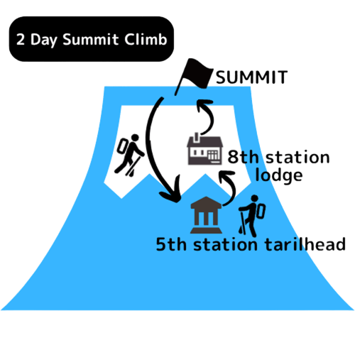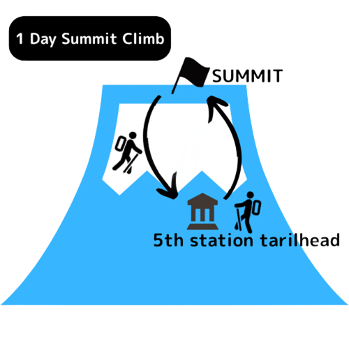 Route: 5th station to the summit and the crater trek on the Yoshida Trail - *This itinerary is the same as our 2-day private tour.